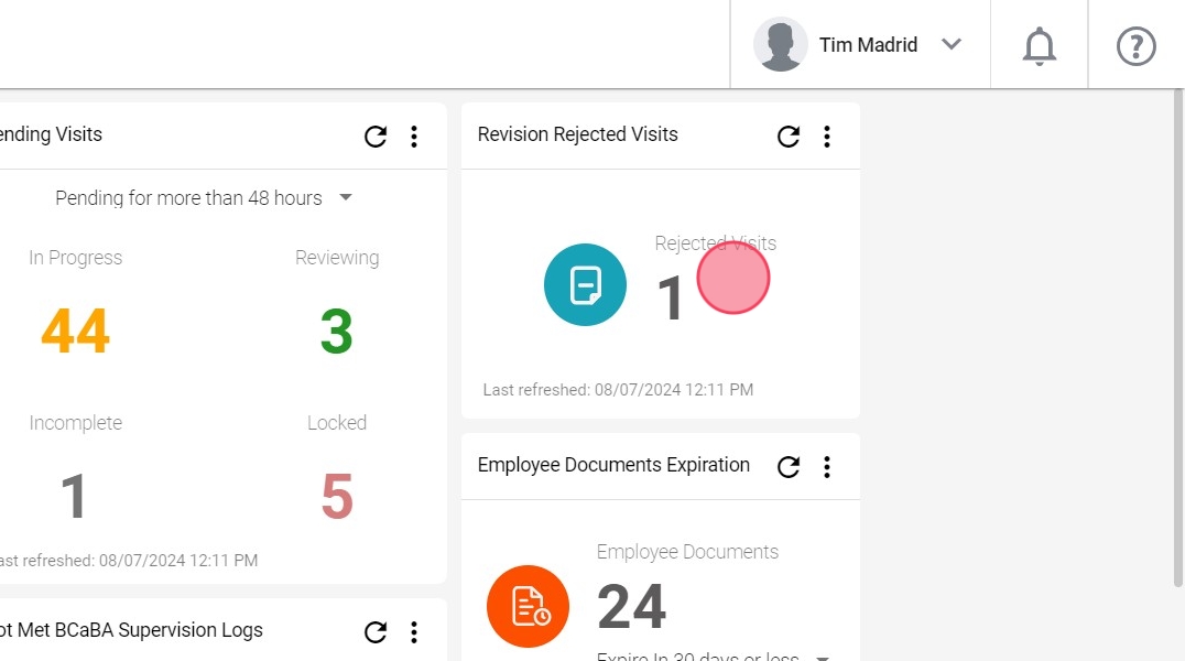 8. Puedes consultar las visitas rechazadas desde el widget Revision Rejected Visits.