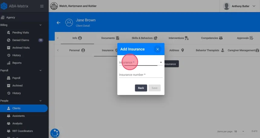 - If an insurance provider is missing from the list, it may need to be added to the agency’s insurance settings first.