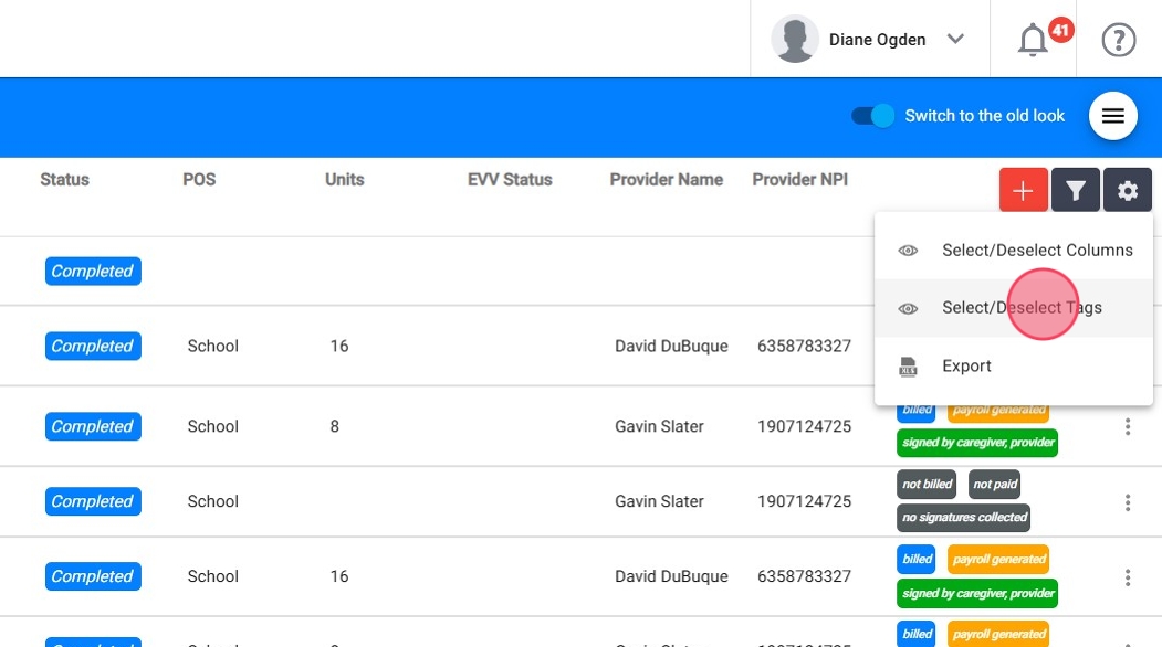 15. Select/deselect columns and tailor your Oversight table to your workflow. Choose which data fields you want to display—whether it's provider credentials, billing dates, or session status—so the Oversight table reflects what matters most to you.