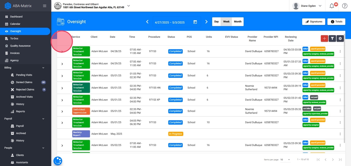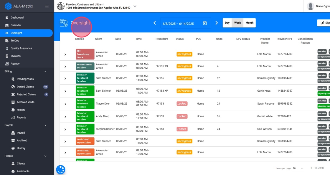 La experiencia mejorada de Oversight en ABA Matrix está equipada con potentes herramientas que brindan a su equipo un control incomparable sobre la visibilidad de las sesiones, el filtrado, la personalización y la gestión de sesiones, todo dentro de una interfaz intuitiva.