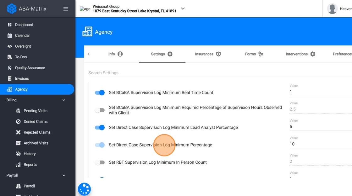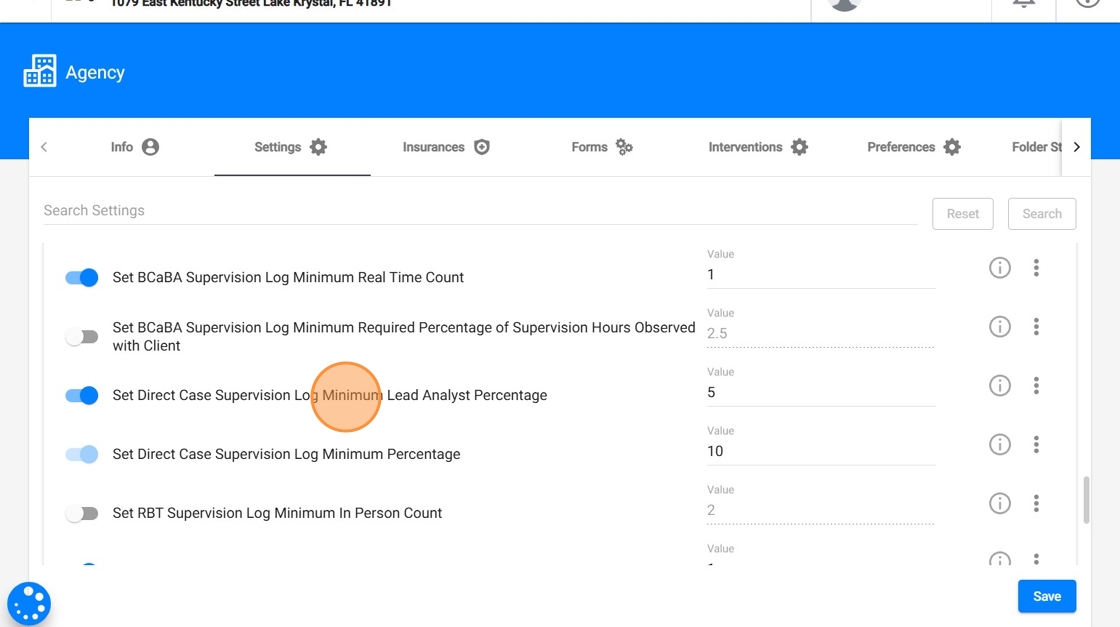To customize these settings, go to: Agency → Settings → Supervision Log