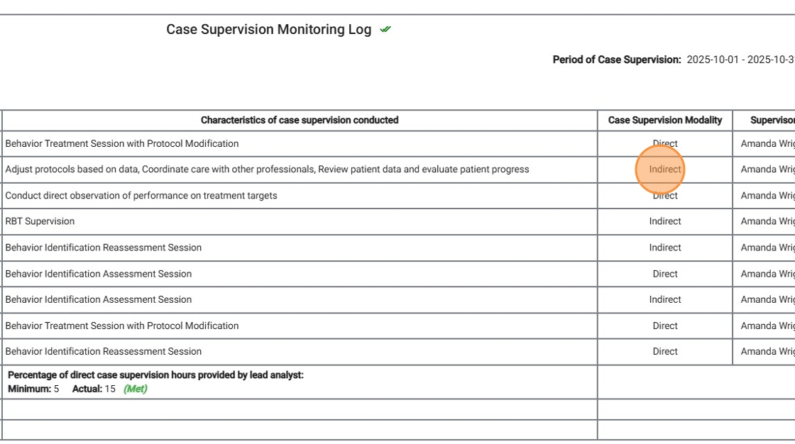 - Direct Case Supervision Events: The system automatically includes all qualifying direct case supervision activities scheduled during the month, such as: