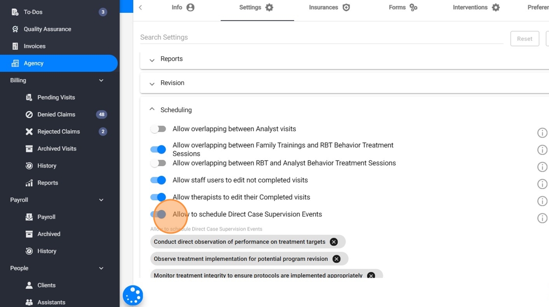 Para personalizar estos ajustes, vaya a: Agency → Settings → Supervision Log.