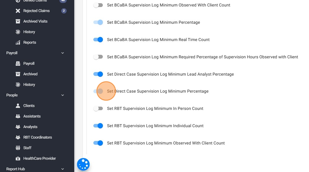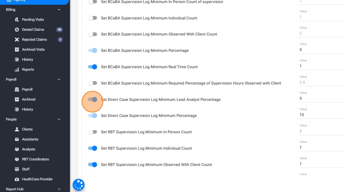 12. El ajuste “Set Direct Case Supervision Log Minimum Percentage” puede modificarse para cumplir con los requisitos de la agencia, pero no puede deshabilitarse.