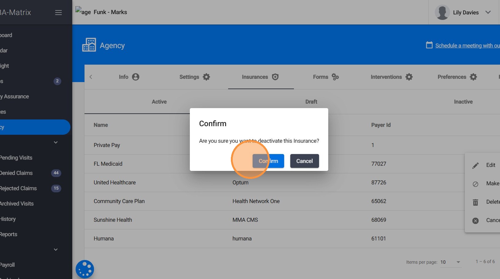 Once an insurance is marked as inactive, it will no longer be available for use in client profiles, including adding or updating insurance information.