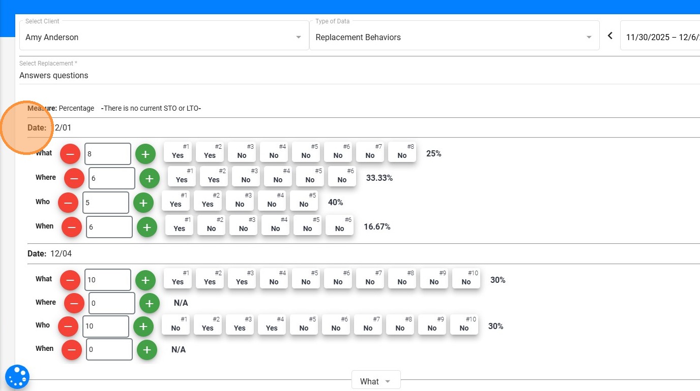 1. If a client’s replacement or skill includes targets, you can collect data for each individual target, not just at the program level. This allows for a more precise and detailed view of the client’s progress.