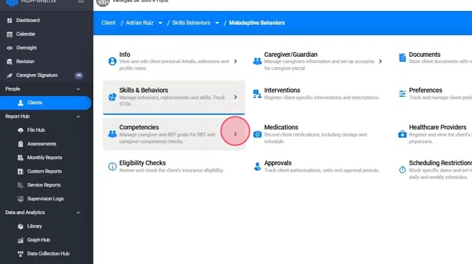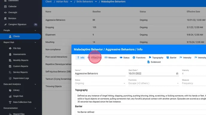 Navigating the layout for Maladaptive Behaviors, Replacements, and Skills