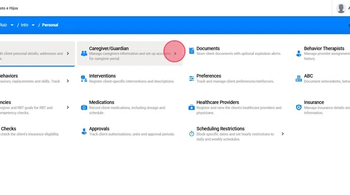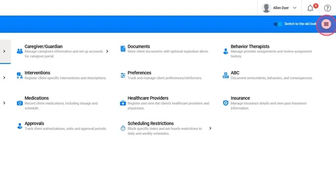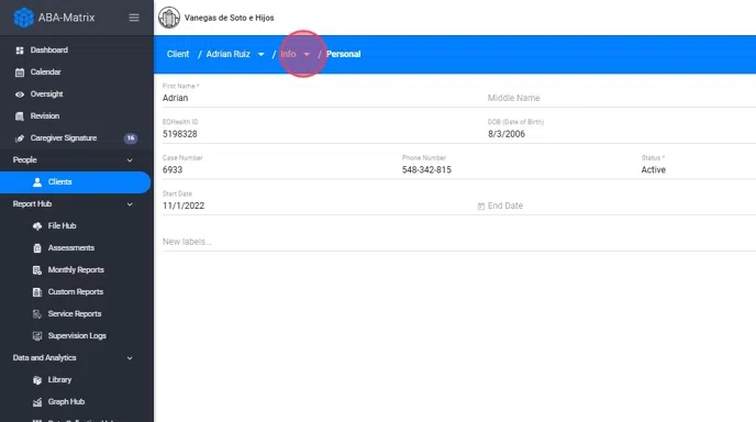 - Click on the client’s name in the navigation path (top right).