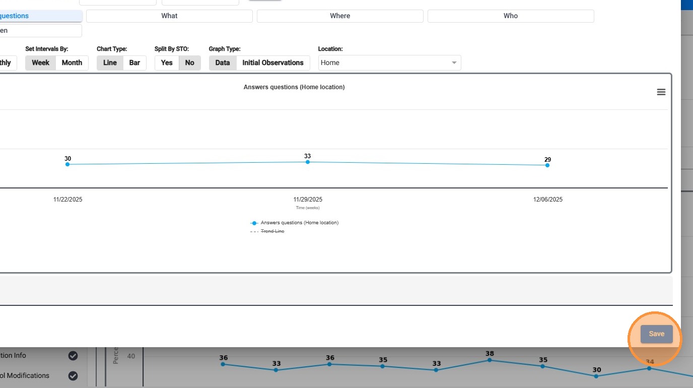 5. Location Filter: Display data from all locations or narrow it down to one place of service, such as: Home, School, Clinic, or Community. This is especially useful for discussing generalization or setting-specific differences.