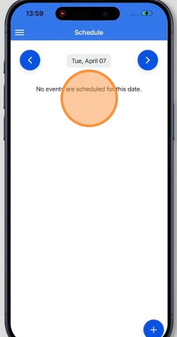 3. After logging in, you will be taken to the Schedule screen, which is the main starting point for managing your daily sessions in the app.
